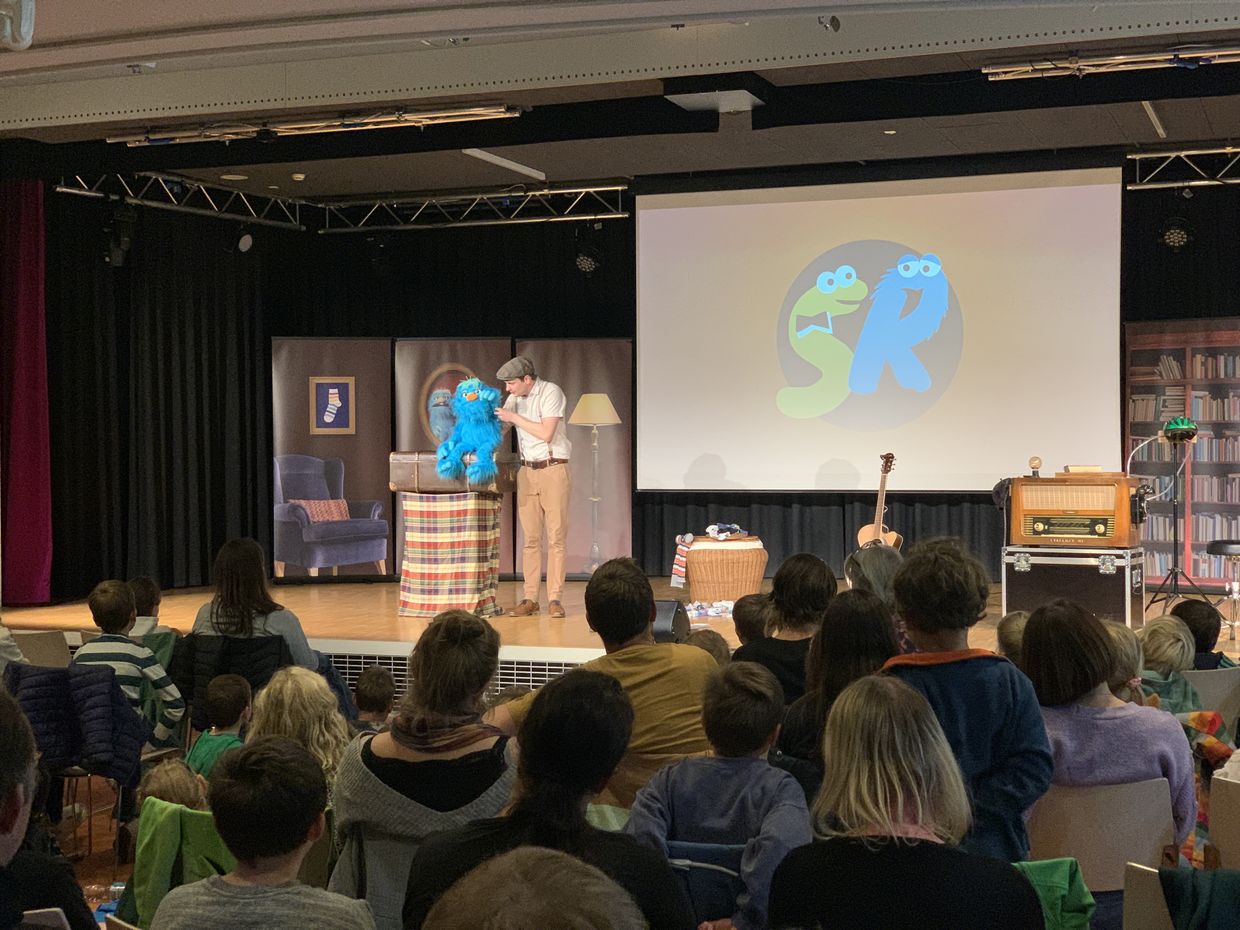 Schon vor der Saalöffnung am Freitag, den 17. Oktober, strömten die ersten kleinen und großen Besucher ins FES Forum. Schnell noch ein Selfie vor dem Ulfie-Roll-up, dann gute Plätze sichern und gespannt auf den großen Moment warten: „Bühne frei für Sebastian Rochlitzer und seinen blauen Freund Ulfie!“