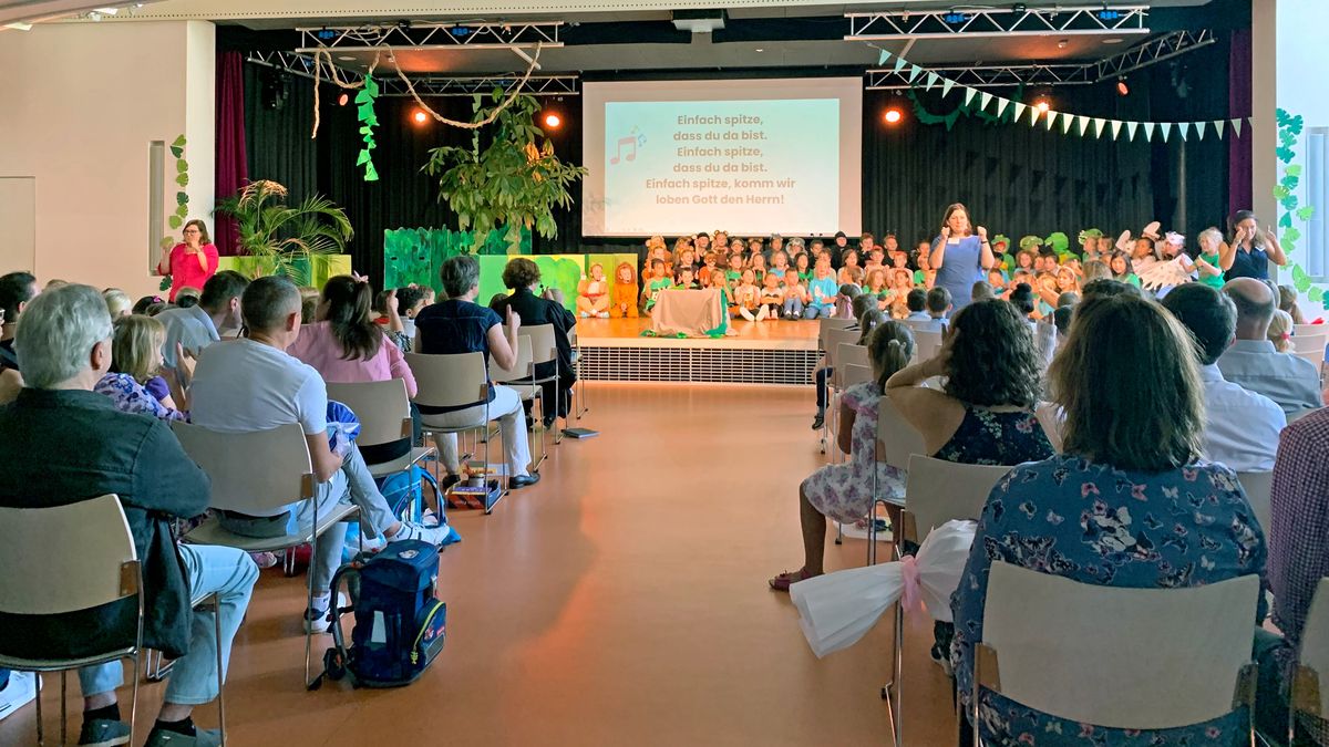 Am 19. September 2025 begann der Einschulungsgottesdienst unserer neuen Erstklässler und Erstklässlerinnen mit einem musikalischen Beitrag einer Schülerin der 2. Klasse. Gespannt saßen die 76 Kinder in den ersten Reihen des FES Forums und schauten neugierig und erwartungsvoll auf die Bühne, wo die 2. Klässler bereits bereitstanden, um mit Liedern und einem Mini-Musical die neuen FES Schülerinnen und Schüler willkommen zu heißen.