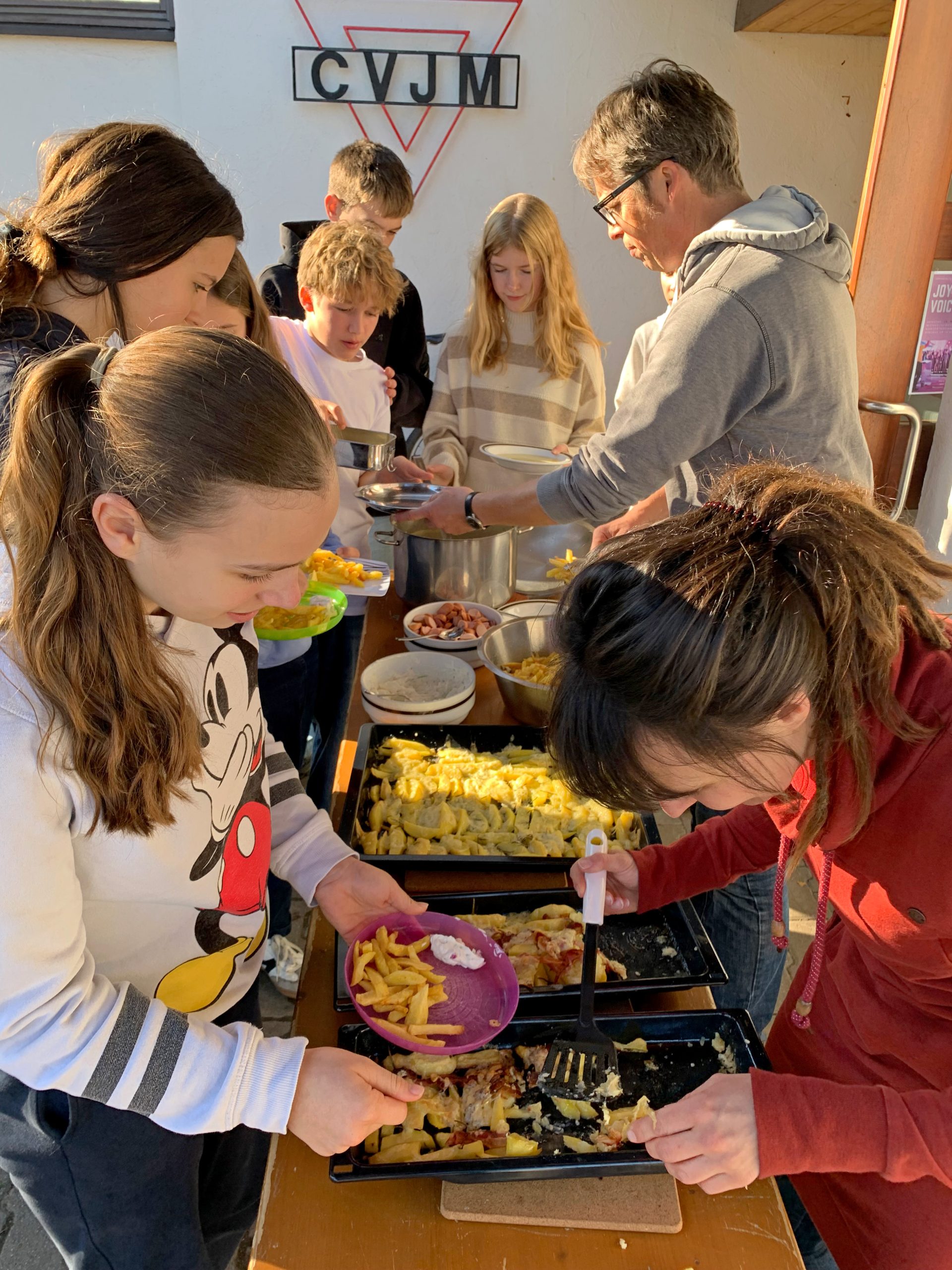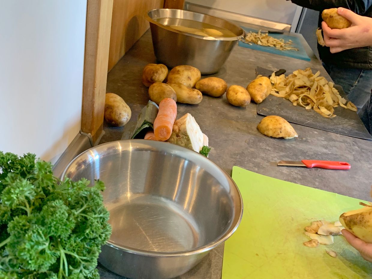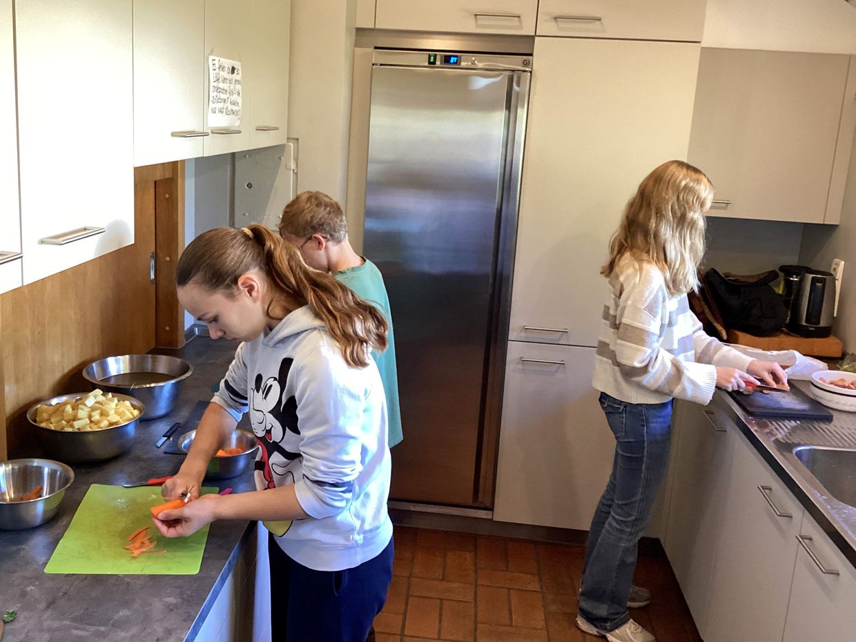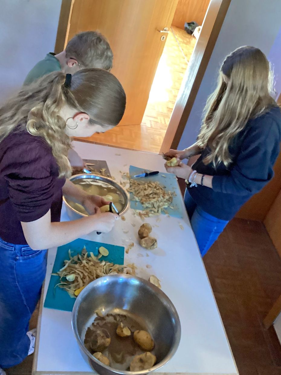 Mit viel Spaß und Teamgeist wurde geschnippelt, gekocht und vorbereitet. Zum Mittag kamen alle zusammen und genossen ein leckeres Kartoffelmenü.