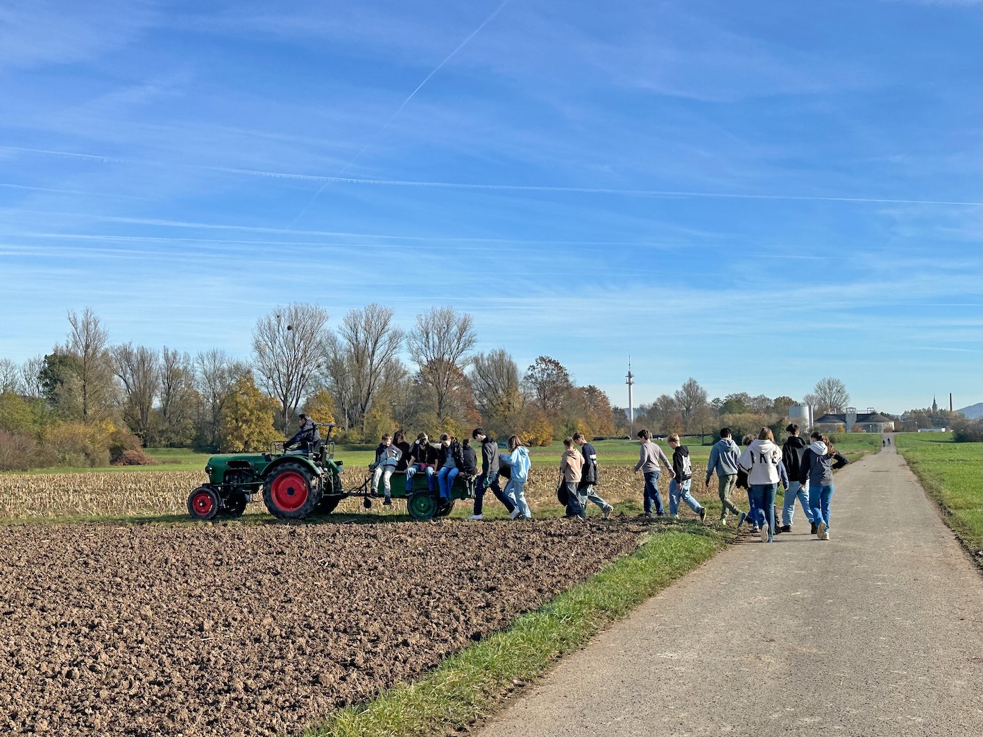 Die Anreise verlief zunächst etwas holprig, doch nach einer kurzen Andacht ging es los – und zwar nicht zu Fuß, sondern mit dem Traktor samt Hänger zum Kartoffelacker. Für viele eine ganz neue Erfahrung!