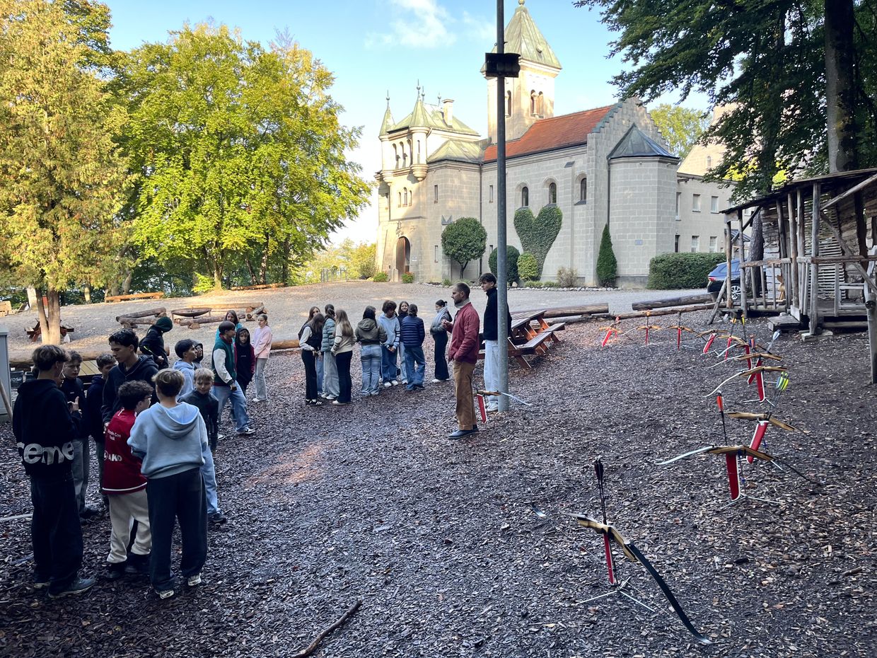 Zum Start des Schuljahres hieß es für die Klasse R8a bereits: „Los gehts auf Klassenfahrt“. Zusammen mit den Klassenlehrern Herr de Jongh und Frau Naasz fuhr die Klasse zu Wort des Lebens (WdL) am Starnberger See. Dort durften Sie in einem wunderschönen historistischen Schloss am See übernachten und den Fokus auf die Stärkung der Klassengemeinschaft richten. Aktivitäten wie Bogenschießen, Niedrigseilparkour, Lagerfeuer und Floßbau garantierten eine gute Zeit und ein gesegnetes Kennenlernen.