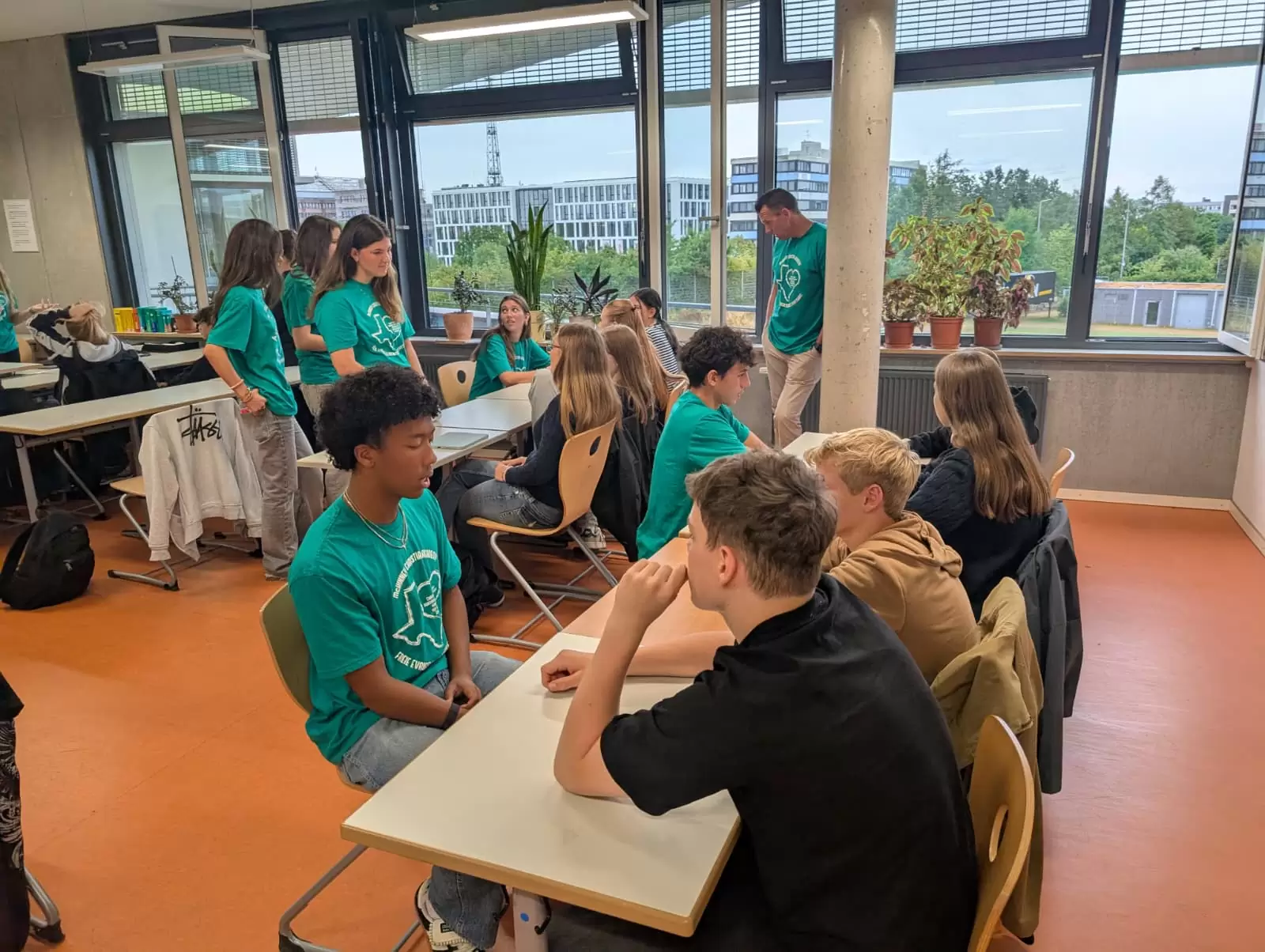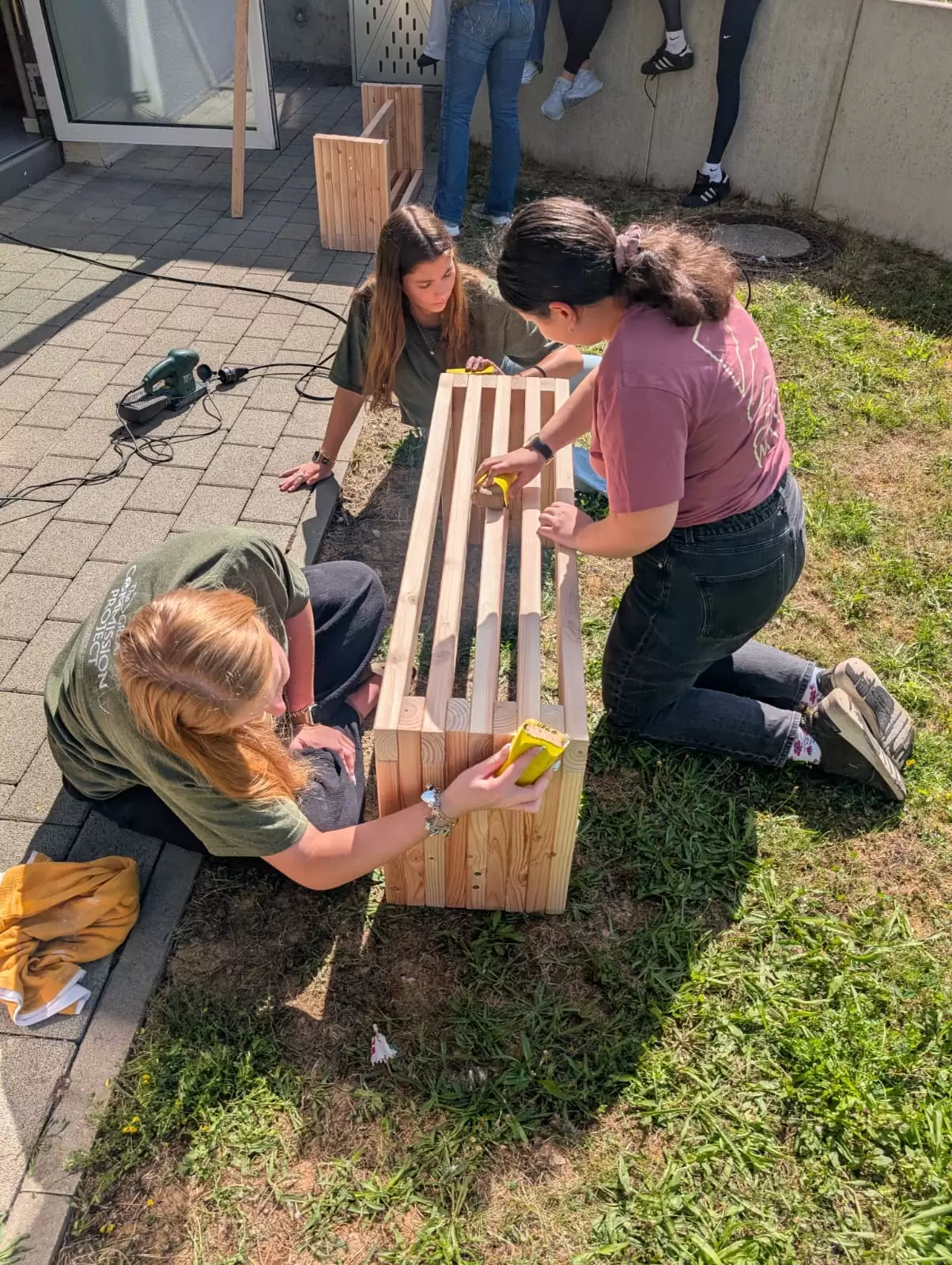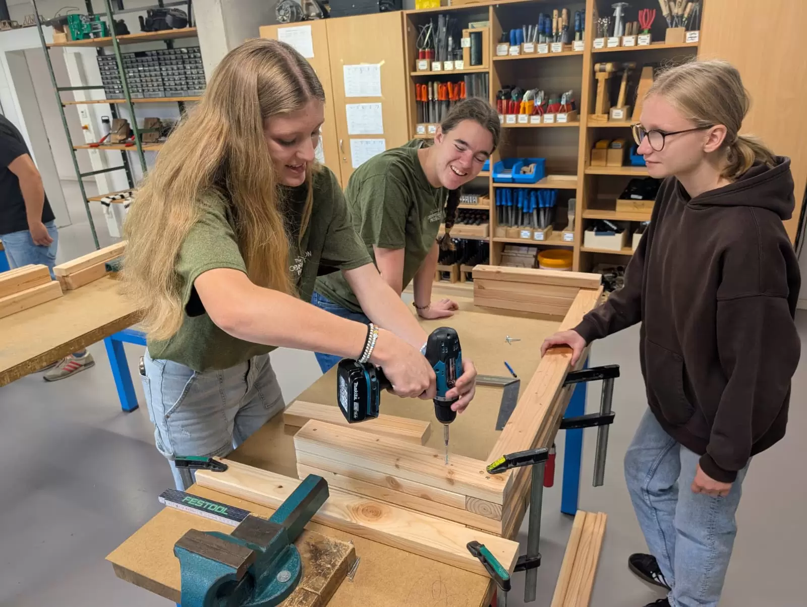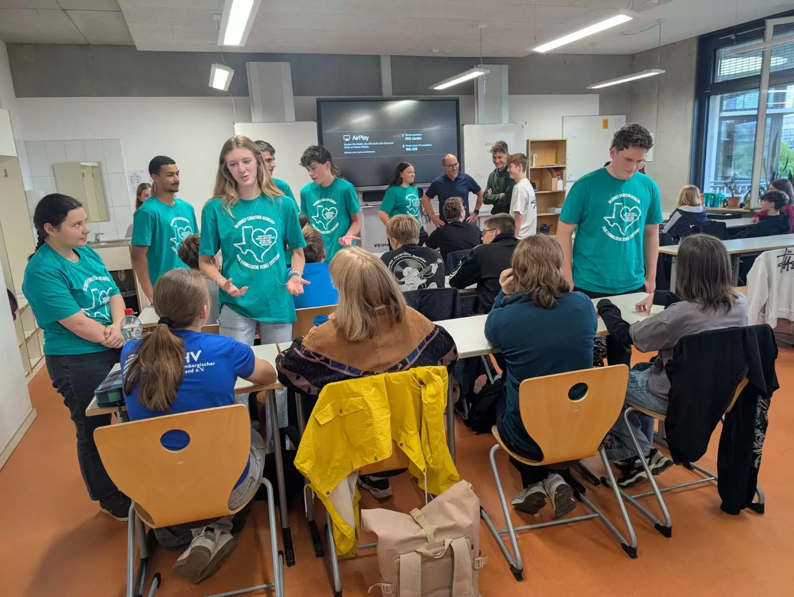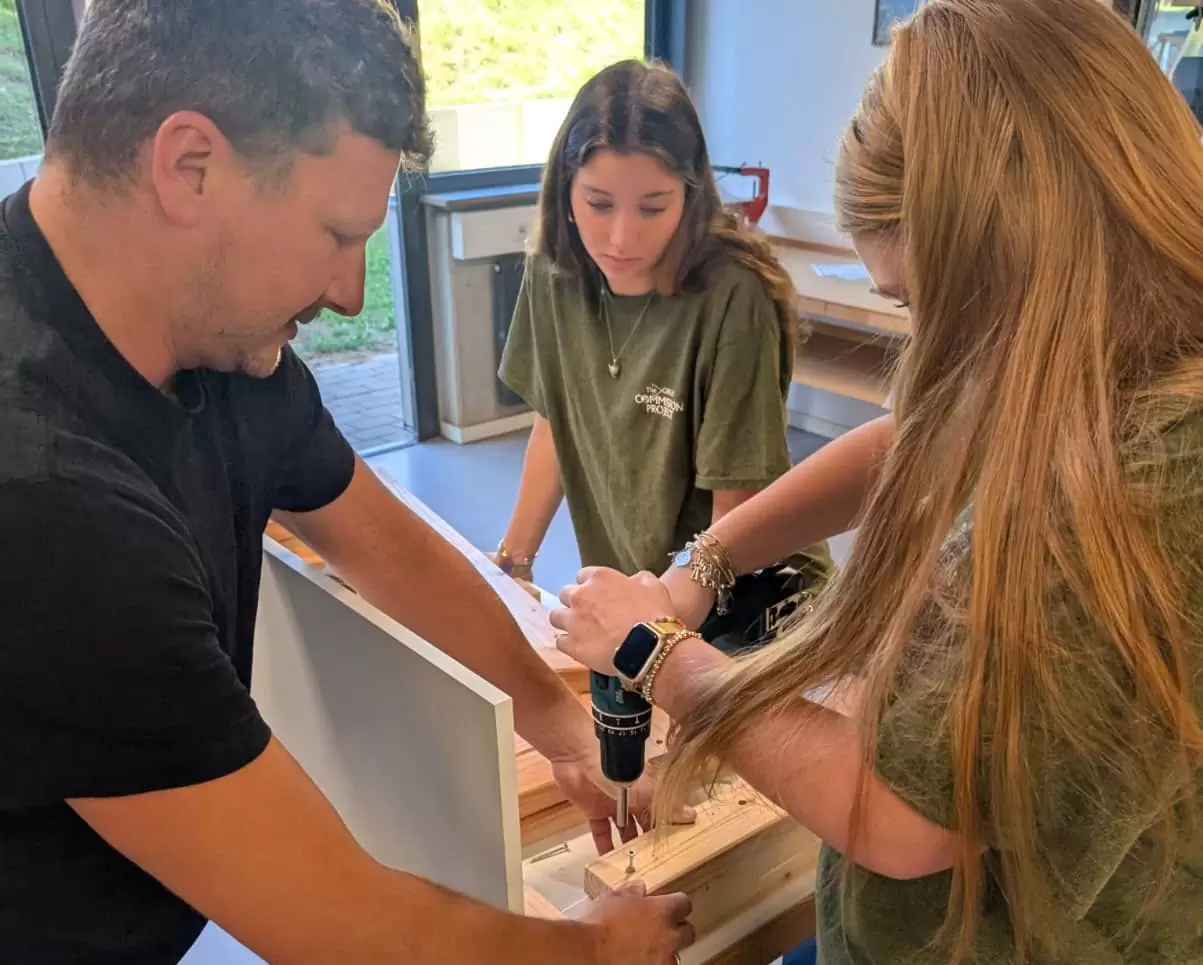Gleich zu Beginn übernahm die amerikanische Schülergruppe die Montagsandacht für unsere Klassen 5 bis 7. In den folgenden Tagen besuchten die Jugendlichen verschiedene Unterrichtsstunden, gestalteten kreative Impulse zum Thema Gebet und kamen in den Austausch mit unseren Schülerinnen und Schülern. Besonders bewegt hat uns der tatkräftige Einsatz der Gruppe bei ganz praktischen Aufgaben: So unterstützten die Gäste aus Texas den Umzug zweier Funktionsräume und fertigten Sitzbänke für die neue Mensa an unserer „jungen Schwesterschule” FES Strohgäu.