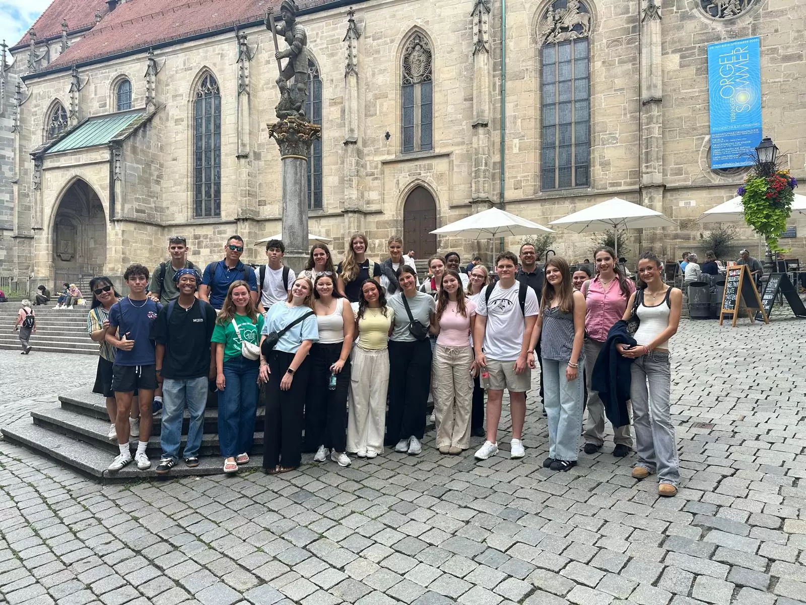 Vom 21. bis 24. Juli durften wir zum zweiten Mal eine Schülergruppe der McKinney Christian Academy (MCA) an der FES Stuttgart begrüßen. Die MCA ist eine christliche Schule im texanischen McKinney, einem Vorort von Dallas, an der rund 700 Kinder und Jugendliche von der Vorschule bis zur 12. Klasse unterrichtet werden. Bereits seit 2024 verbindet unsere beiden Schulen eine lebendige Partnerschaft im Rahmen des internationalen „Great Commission Projects“ des christlichen Schulverbands ACSI.
