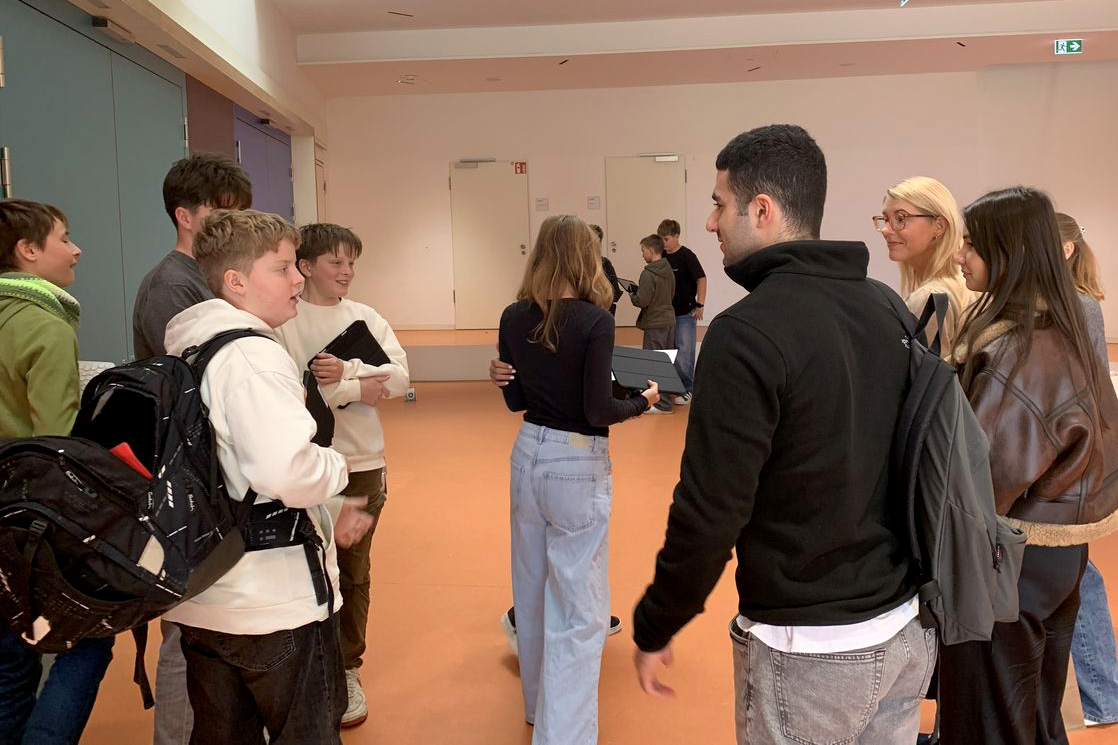Am 4. November startete im FES-Forum ein außergewöhnliches Projekt: Studierende der Hochschule der Medien trafen auf unsere Achtklässlerinnen und Achtklässler – für eine spannende Bildungsreise, die Kreativität, internationale Zusammenarbeit und das gemeinsame Engagement für Nachhaltigkeit vereint.