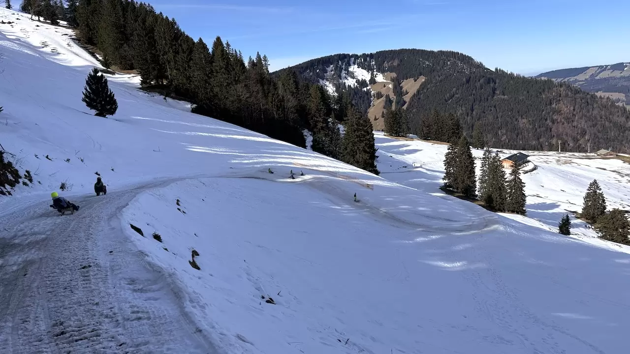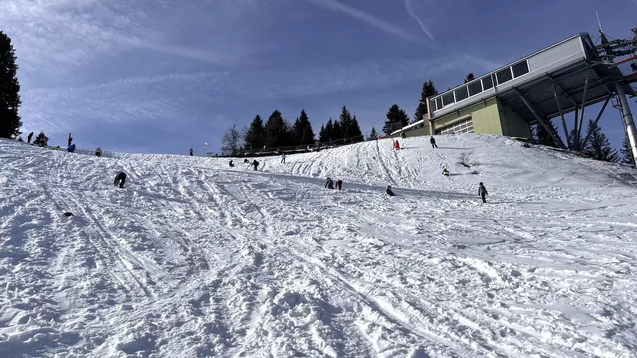 Oben am Lift angekommen, gab es aber erst einmal eine kleine Enttäuschung: Die offizielle Rodelbahn war an einigen Stellen vereist und deshalb kurzfristig gesperrt. Wir dachten schon, wir könnten gar nicht mehr rodeln, aber zum Glück gab es eine Lösung! Mit einem kleinen Fußweg über die Wiese konnten wir eine verkürzte Strecke nutzen. Es lag zwar nicht viel Schnee, aber das war gar nicht so schlimm, denn dafür hatten wir wunderschönes Sonnenwetter! Die Abfahrten haben mega Spaß gemacht – wir sind mehrmals gerodelt und hatten eine tolle Zeit mit unseren Freunden.Gegen 15:00 Uhr stiegen wir dann wieder in den Bus und fuhren zurück nach Stuttgart. Auch die Rückfahrt war total entspannt – manche haben gequatscht, andere ein bisschen gedöst. Gegen 18:00 Uhr kamen wir gesund, müde, aber glücklich wieder an der Schule an.