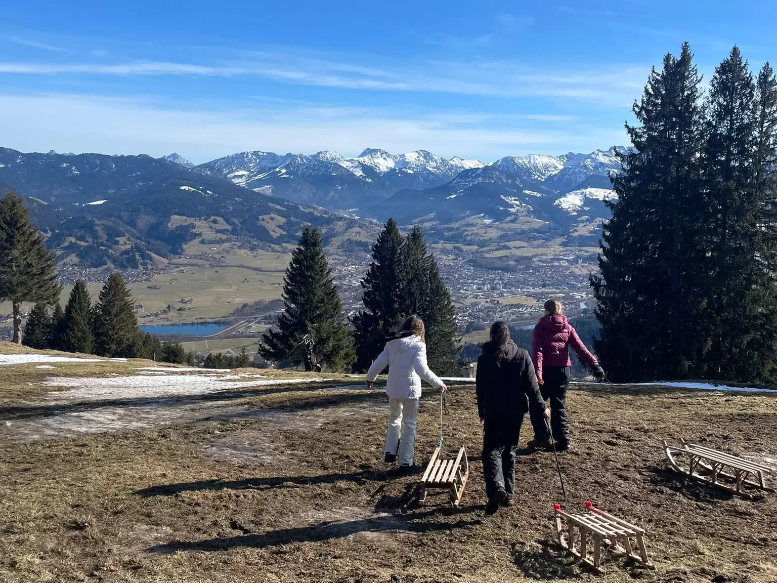 Die Fahrt war super lustig – wir haben viel geredet, gelacht und Musik gehört. Es war total entspannt und die Zeit verging wie im Flug. Als wir endlich an der Mittelbergbahn angekommen sind, haben wir uns unsere Schlitten geschnappt und sind mit dem Sessellift auf den Berg gefahren. Die Aussicht war wirklich toll!